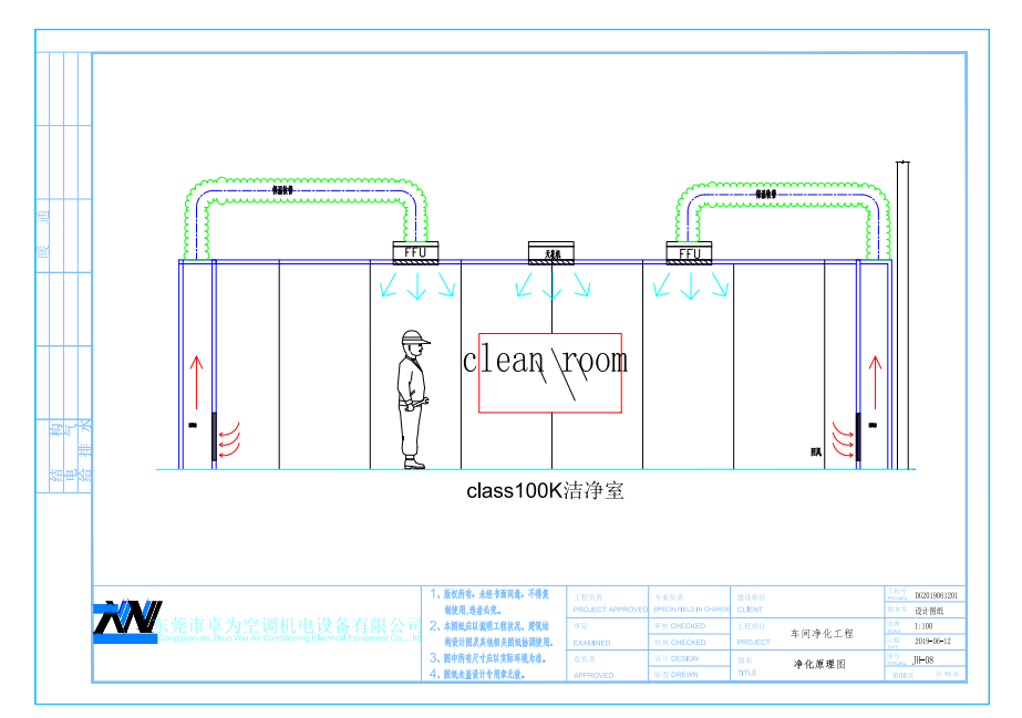 潔凈度的實(shí)現(xiàn)是通過(guò)布置在車(chē)間上的FFU高效過(guò)濾送風(fēng)單元過(guò)濾,足夠的換氣次數(shù)來(lái)實(shí)現(xiàn)的,新風(fēng)采用初效過(guò)濾后送入車(chē)間。